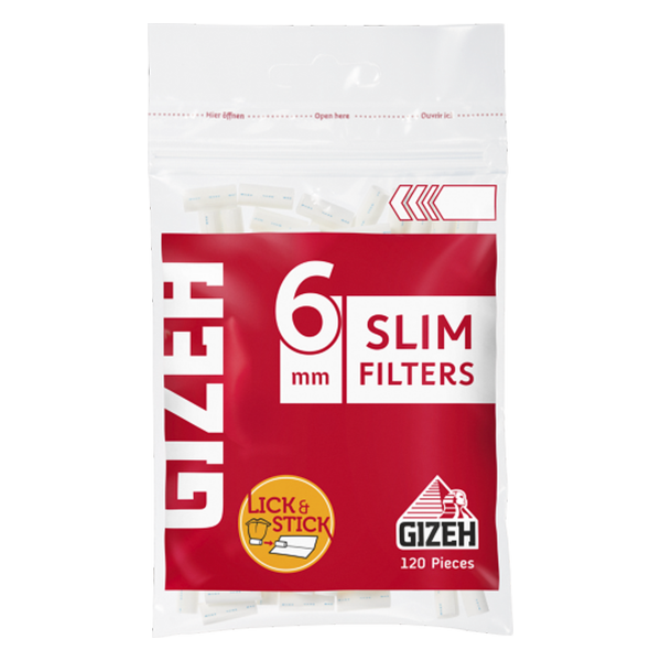 FILTROS GIZEH SLIM 120 filtros Diámetro: 6mm Longitud del filtro: 15 mm Tira adhesiva CARACTERÍSTICAS DEL PRODUCTO borde engomado